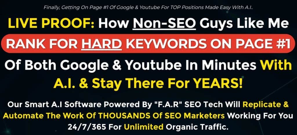 - Powered By “F.A.R” SEO A.I Tech That Provides FAST & RELIABLE Rankings!